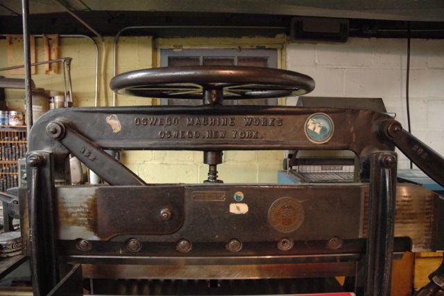 While Shannon and Scottie, the other attendee at the class, worked on their projects, I browsed around taking a few photos of the incredible machinery and tools.  Bay View Printing Co. even has a working Linotype machine!  One of less than a dozen in the Midwest.  Below is the scrap metal, just waiting to be melted into new type.