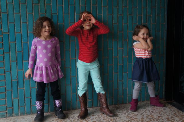 After being told not to sit on the ledge, we snapped some pictures at the blue wall.