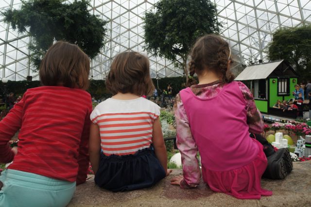 We showed our friends all the cacti, plants growing in boots (“whaaaaat?!?! that’s so silly!!”), and then headed to the show dome to see the trains.