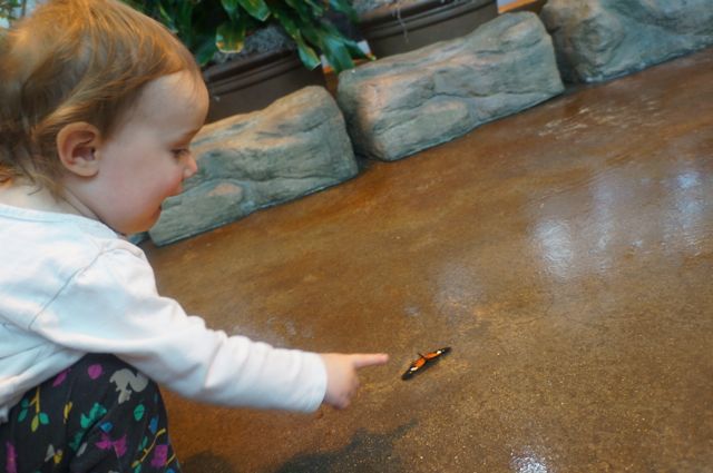Next we headed to the butterfly garden. You can’t really see (well maybe if you know her really well), but above, S is thrilled to point out the butterfly above. Her eyebrows are raised and she was squealing.
