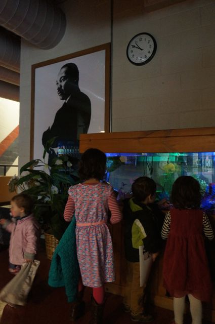 The kids got to be on stage for like 45 minutes, and were FULLY engaged the entire time. They thought it was a morning of playing, basically. There were no specific acting methods and no rigid instructions. Instead, they got a general outline for how to tell a story on stage and an opportunity to share ideas about the story.
