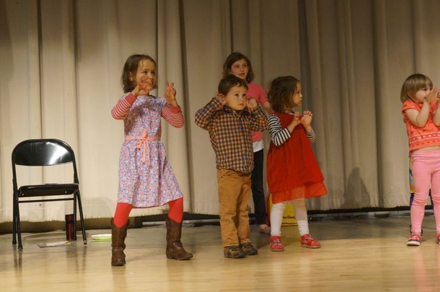 My youngest even joined in 🙂 She spent the rest of the time walking up and down the stairs to the stage. And fell on her face twice.
