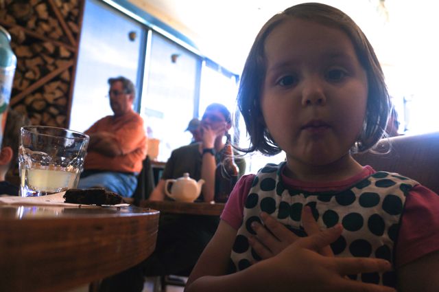 But when we arrived, we had to share a table with four other people. One of my kids was feeling particularly shy and obstinate that day, so we almost had to call it off due to table sharing. Luckily, two super nice folks saw what was about to happen and offered up their table, saving the day.