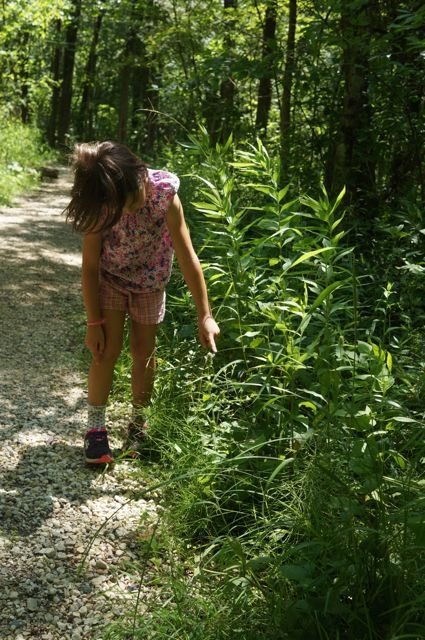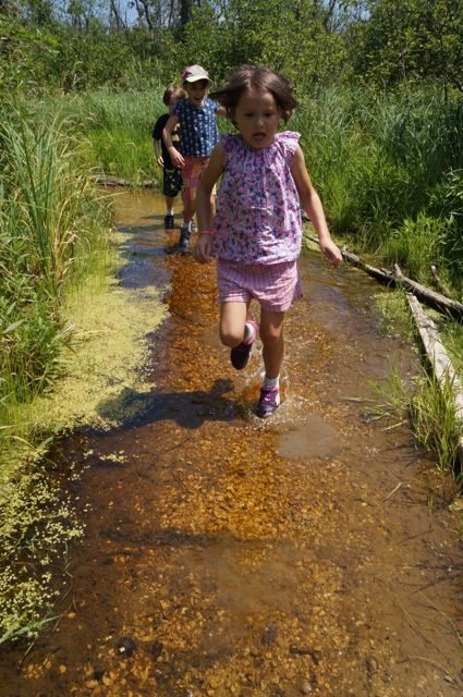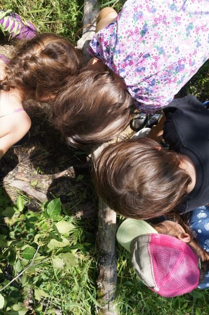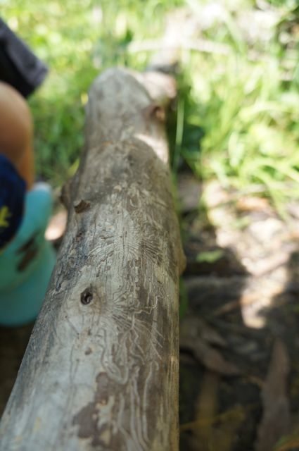 At a small log crossing, we noticed some really interesting designs in the wood. We talked about invasive species and the kids guessed that perhaps it was the box elder bug that made these marks. However, I can’t identify trees yet so I couldn’t confirm that we were looking at an elder. I’d really like to start learning about tree/plant/flower identification in Wisconsin, so if you have any tips please let me know!