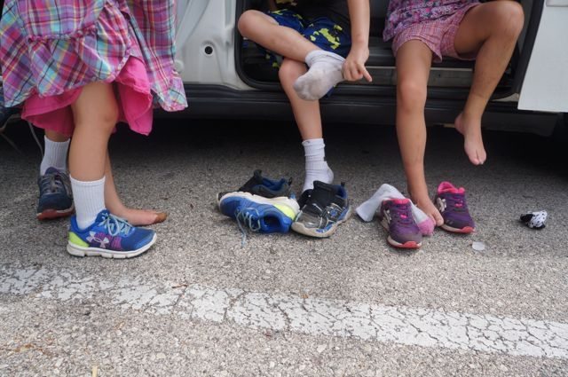We peeled off our shoes and socks, and headed out with the intention of hiking the loop in early fall when it’s more dry.