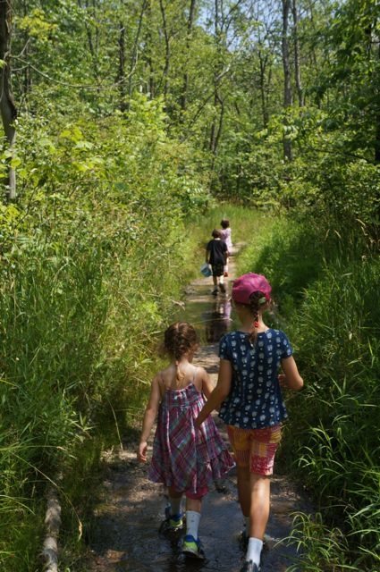 We made it through the white cedar forest when people started to get irritable. It was around 11am so it was very hot, sunny, and humid. The buzzing flies didn’t help. The first wooden bridge over the Milwaukee River wasn’t too far ahead, but people were starting to fade.